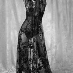 Our love for lace and embroidery will describe this beautiful Kimono Dress. Flower embroidery and matte grey sequins on a base of soft lace. This alluring attire is a head turner. Be one of a kind!