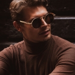 Timeless round design with gold colour metal temple. Inspired by Mad Max and the Steampunk. Choose between 3 colour options for the lens. Blue, Brown and Black – Comes in two sizes; 50mm and 55mm. The ultimate gift for him and her.