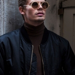 Embrace the grace of the 70’s with high quality retro round sunglasses. Nougat coloured frame and matte-gold metal temple.