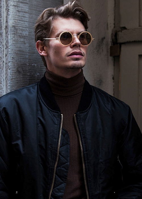 Embrace the grace of the 70’s with high quality retro round sunglasses. Nougat coloured frame and matte-gold metal temple.
