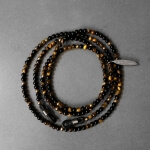 The beaded chains are made of gemstones. Choose between a beautiful combination of Onyx and silver colour beads or Tiger Eye with gold colour beads. A practical and attractive accessory for nomads and dreamers.