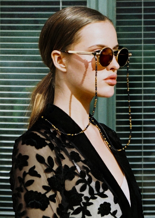 The ultimate gift for him and her. This unique box contains your choice of sunglasses and your choice of beaded chain. The sunglasses are made of metal and UV protection lens. Timeless design with an edgy detailed wire on the side. Choose between a smaller rounded lens, 50mm width or a classic bigger lens, 55mm width. Both sizes are unisex. If you prefer John Lennon/Retro style choose the small option lens. The colour options are black, brown and blue.