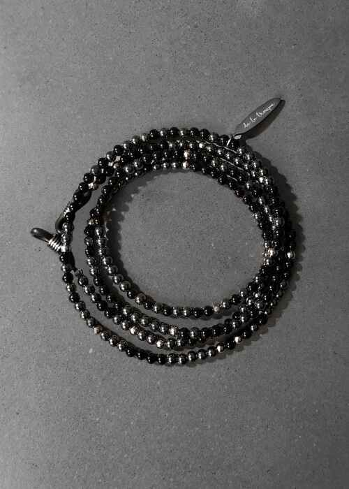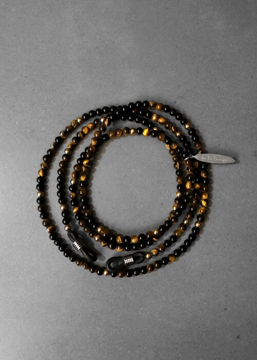 The beaded chains are made of gemstones. Choose between a beautiful combination of Onyx and silver colour beads or Tiger Eye with gold colour beads. A practical and attractive accessory for nomads and dreamers.